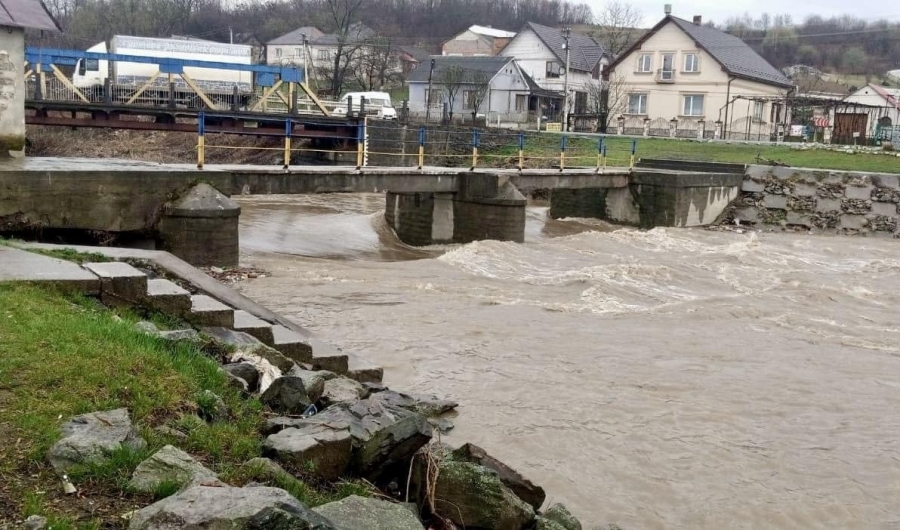 Небезпечна ситуація склалася поблизу села Гетиня. Через потужні водні потоки конструкція опори зазнала суттєвого пошкодження і нахилилася, що створює ризик аварії на газовій мережі.